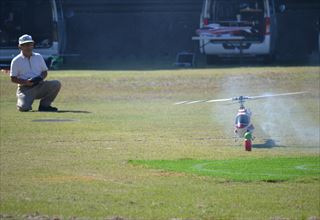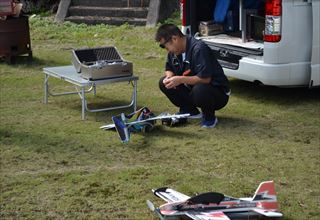 「テープの上~だ~。」 | この日の為仕上げた 飛行機で参戦のシンさん。 |