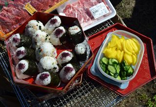 | 事務局奥さんの愛情たっぷり おにぎりと漬物(#^.^#) 奥さん「新米だよー」 |