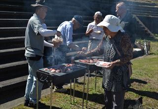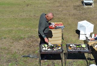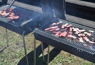 お昼は秋の大会恒例!久々のBBQでーす