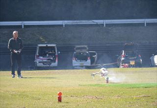 | が、煙幕で見えづらそう。 | 初参戦フクさん。 | 思った以上に難しかったみたいで 「こんなにいう事きかんかったかの?!」とw |