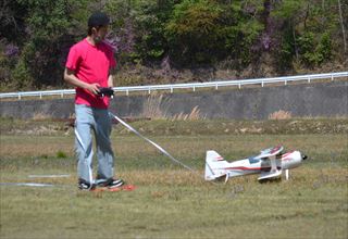 | サトさん、上空フライト中。 | プロポとにらめっこ中のシンさん。 | クラブ機を調整中でした。 | ||